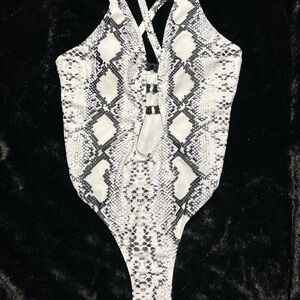 🖤🖤WHITE AND BLACK SNAKESKIN LOW V FRONT ONE PIECE BATHING SUIT SZ XL🖤🖤