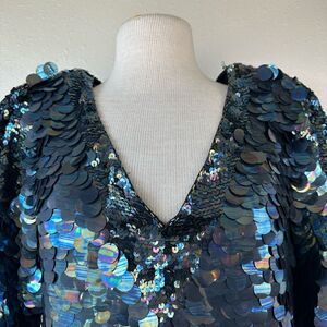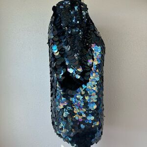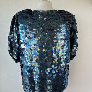 very cute sequin top with shoulder pads. perfect if your a midnights Swiftie! measures 19 inches armpit to armpit and 23 inches shoulder to hem