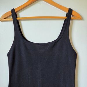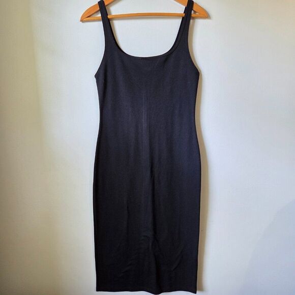 EUC ZARA BLACK SCOOP NECK BODYCON MIDI DRESS MINIMALIST SIZE L