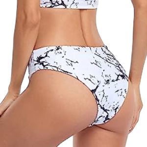 EUC Zaful High Waisted Marble Print Bikini Bottom 8 White
