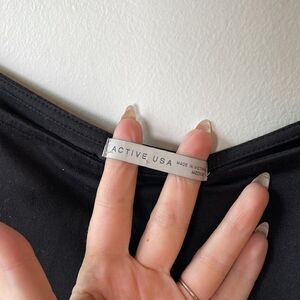 Gorgeous and excellent condition Zara "Active USA" black spaghetti tank top. Cinch sides. High Neck. 92% polyester, 8% spandex. Size medium. Hanger straps attached. Perfect top for jeans and heels. Extremely soft and comfortable. No holes, stains, marks, etc. Shop my closet for more from Zara, Revolve, Free People and much more -- most like new or new with tags. Make an offer!