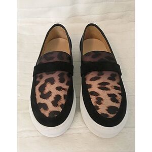 EUGENE RICONNEAUS STACY Leopard Pony Hair Slip-On Platform Loafers US 10/10.5