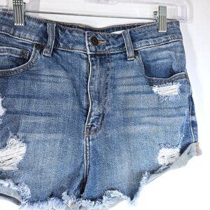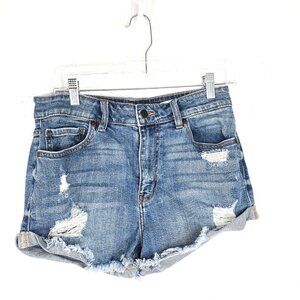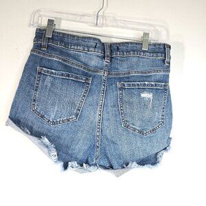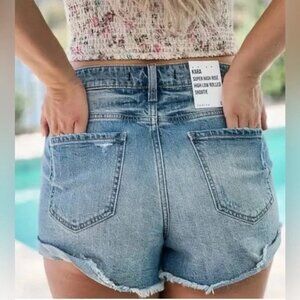 EUNINA KARA Distressed Super High Rise High Low Rolled Shortie Denim Shorts