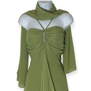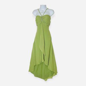 EUREKA Women Prom Dress Spaghetti Straps High Low LG Green with Scarf Polyester