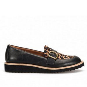 EUROSOFT Black/Animal Print Leather Buckle Loafers