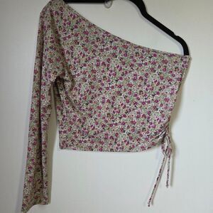 EUX LUSH FLORAL ONE SHOULDER LONGSLEEVE BOHO TOP SIZE L