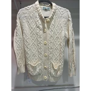 EV Ltd. Vintage 1970's Off-White Cardigan Button-Up Sweater‎ Heavy Knit