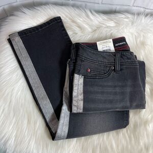 These are NWT, and feature a grey metallic striped on the outside seam of the legs. They measure 15" laid flat at waist, 9.5" rise, inseam is 29". In very good pre-owned condition. Normal wear and tear noted, but no flaws or damage. Please review pictures and feel free to ask any questions or for more pictures prior to purchasing.