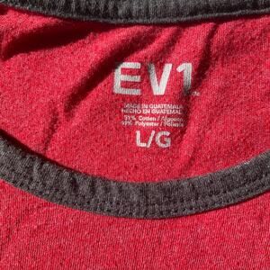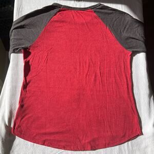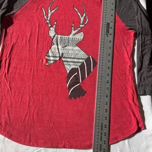 EV1 Women’s 3/4 Sleeve Screw Neck t-shirt size L, Red & Gray, Reindeer Christmas