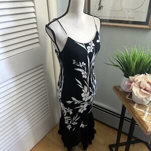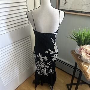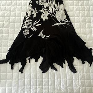 EVA BLUE Dress Womens 10 Black Floral Strappy Midi Asymmetric Fairy Grunge Y2K