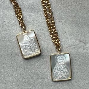 *EVA* Rectangular Carved Shell Religious Pendants