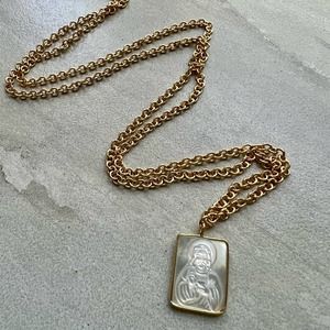 22k gold electroplated chains, 15mm by 10 mm size pendant, 26” chain.