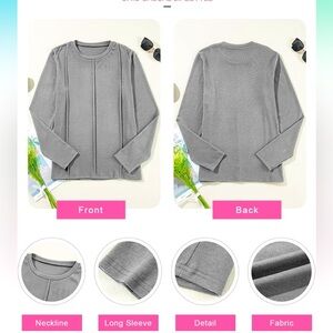 EVALESS Womens Long Sleeve, Pleated Crewneck Knit Solid Loose Blouse size L, never worn, light gray