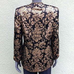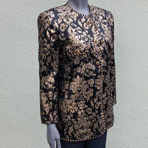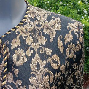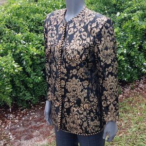 EVAN PICONE LADIES BLACK & GOLD FLORAL COLLARLESS LUXURY EVENING JACKET