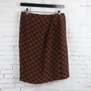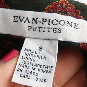 EVAN PICONE PETITES GREEN WITH ORNATE PRINT FRONT PLEATED SILK SKIRT SIZE 8