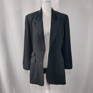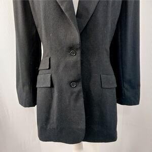 OMG, this jacket, blazer is just stunning! In black 100% pure, fine worsted wool, it features a two button front and black velvet collar! Shoulder pads, triple front pocket detail, fully lined in black poly satin! Tailored impeccably, with longer length, it tapers in at the waistline and that adds a feminine touch! Size 12, worn twice only! Excellent! Superb EUC Condition! **ABSOLUTELY GUARANTEED CONDITION: EUC MINTY-EXCELLENT TO LIKE-NEW, by Lily @HauteClub!***