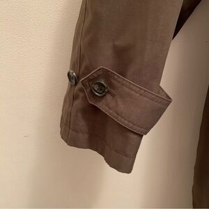 Beautiful vintage olive brown long brown trench coat with removable zippered wool lining, button accents, and belt.ast sh