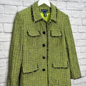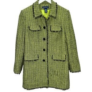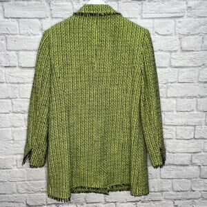 EVAN PICONE Womens Coat Lime Green/Black Raw Hem Size 16 Tweed Peacoat