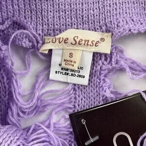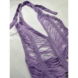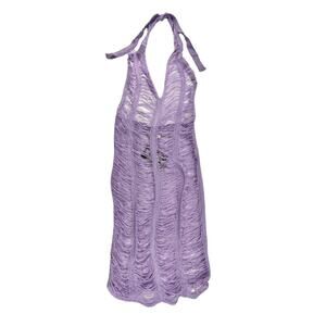 A brand new loosely knit lavender/light purple halter bandage dress with areas that are mostly see-through, size small. Not stretchy at all.