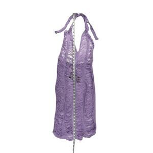EVANGELINE | NWT S Purple Lavender Loose Knit Sheer Bandage Halter Bodycon Mini Dress