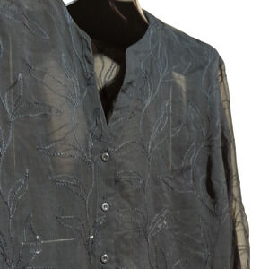 EVAN-PICONE Black Sheer Embroidered Floral Button V-neck Top Plus 2X