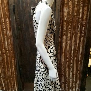 Size 4 measurements: 40 1/2" top to bottom, 15 1/2" Pit to pit, 12" waist. 95% Polyester, 5% spandex. All of our pieces are pre-owned.