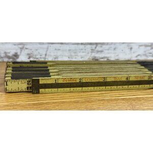 The EVANS 6 Foot Wood Folding Rule With Brass Extension # X40 is a vintage original tool made in the United States. This collectible carpentry rule is crafted by Evans, a reputable brand known for quality woodworking products. The brass adds durability and functionality to this classic tool, perfect for woodworking enthusiasts and collectors alike. Its length of 6 feet makes it practical for various carpentry projects, making it a valuable addition to any workshop or tool collection. Good working condition.