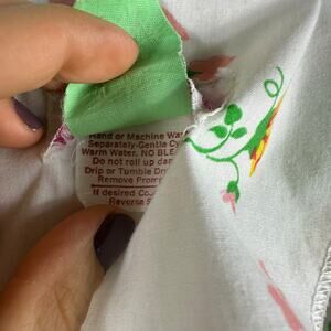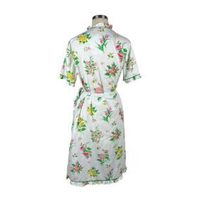 Vintage white pink and green floral faux wrap belted mini dress from Evelyn Pearson in size small. There's some minor discoloration on the front, otherwise great used condition for age.