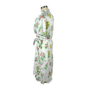 EVELYN PEARSON White Pink Green Floral Faux Wrap Mini Dress Women's Size Small