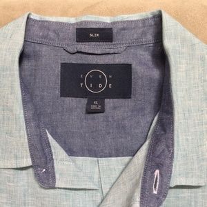 This is an Even Tide men's short-sleeve, button-down shirt in size XL / Slim and a light-blue color.