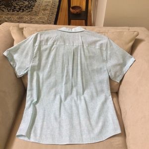 The shirt is a beautiful light blue color (tag photo shows truest color & thread pattern) with white thread highlights.