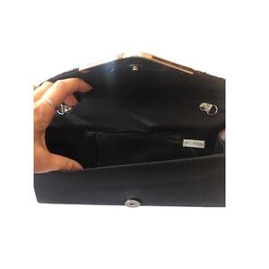 EVENING Bag Black Satin Glitter Clutch with Silver Hardware and Chain