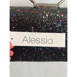 EVENING COCKTAIL BAG CROSSBODY CHAIN OR CIRCLE HANDLE MULTI COLOR SPARKLE BLACK