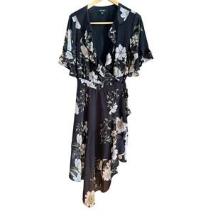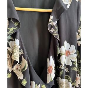 EVER NEW | Black Floral Print Wrap Dress Ruffle Sleeve Ruffle Neck | Size 12