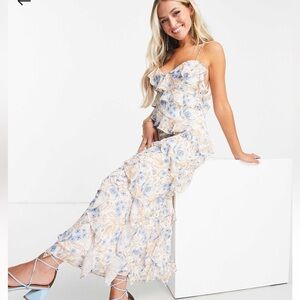 EVER NEW PETITE RUFFLE MIDI DRESS BLUE FLORAL