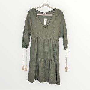 EVEREVE Ever Denim Dress Stretch Medium Wash NWT Long Sleeve Button Down Large
