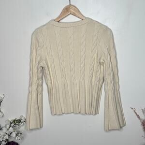 EVEREVE McKinnon Bell Sleeve Pullover Cable Knit Sweater Cream Ivory Sz XL {3D4}
