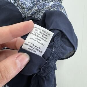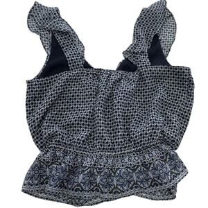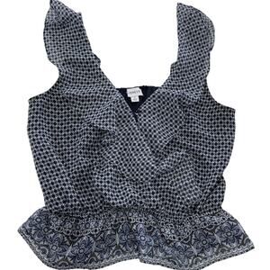 EVEREVE Shirt Womens Small Blue White Surplice V Neck Peplum Ruffle Sleeveless