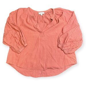 EVEREVE Women’s Burnt Orange Striped Cotton Rayon Peasant Blouse Size Small