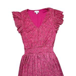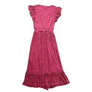 EVEREVE Elena Short Sleeve Floral V Neck MIdi Dress Pink Size Medium