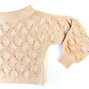 Super soft and luxurious blush colored long sleeve scoop neck sweater