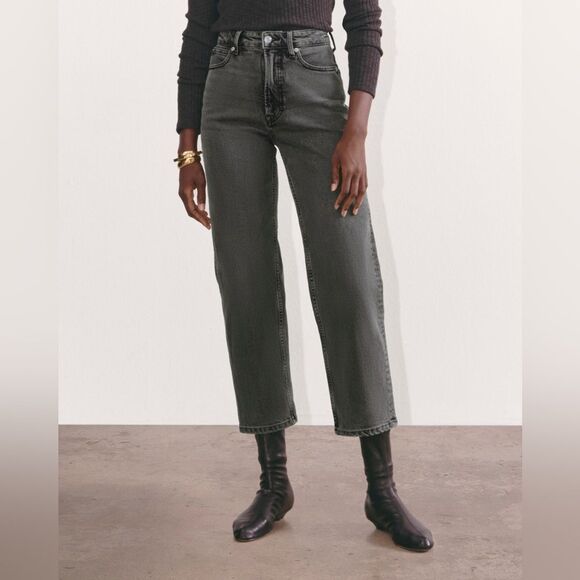 EVERLANE Curvy Hourglass Way-High Straight Leg Jeans Washed Black Gray 26 Long