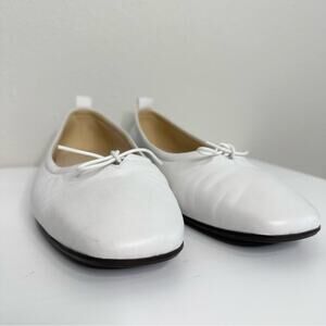 The Ballet Flat has been updated with a thinner Nappa leather to move and mold to your feet for optimal comfort. Featuring a sculptural squarer toe and a higher throat line. Plus, it has all the elements of comfort - like buttery soft leather, a cushioned insole for all-day wearability, and an outsole that is made of low impact, recycled leather.