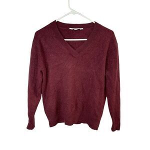 EVERLANE Deep Red Burgundy Long Sleeve V-Neck Pullover Cashmere Sweater XS Cozy