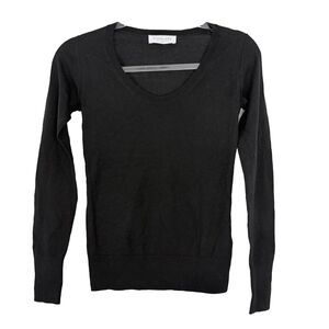 EVERLANE Featherlight Thin Knit Wool Sweater XXS Black Scoop Neck Soft NEW B16