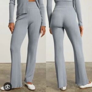 EVERLANE Flare Ribbed Knit Pants S Pearl Gray Pull On Stretch High Rise NWT B37