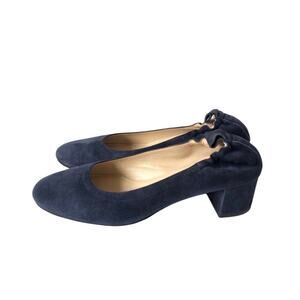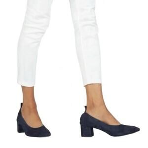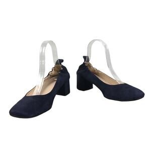 EVERLANE Italian Suede Leather Day Heel Pumps Women 8 Navy Classic Retro Elegant