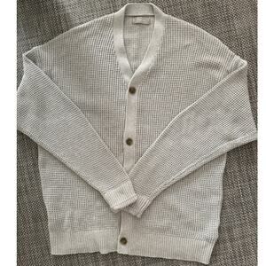 EVERLANE Men's No Sweat Waffle Fisherman Cardigan Sweater Ash Gray XL Preppy