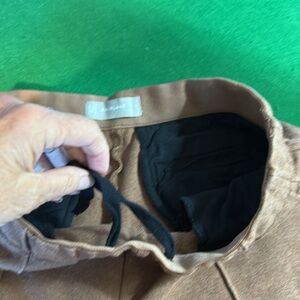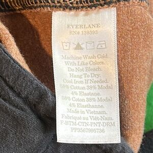 Everlane, the dream pleaded knit crop pant Heather Auburn color 58% cotton 38% model and 4%elastane two front pockets two back pockets elastic drawstring waistband tailored look soft sweatpants feel great work pant professional trouser flat finished wrinkle resistant ankle crop length great condition 13.5” waist 10” rise 24.5” inseam brown