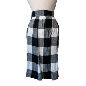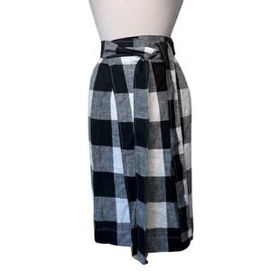EVERLANE THE LINEN WRAP SKIRT Black White Plaid 100% Linen Size 2